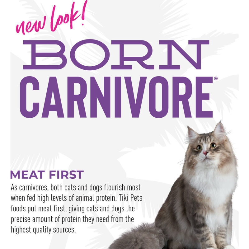 • NON-GMO INGREDIENTS - Your feline friend will thrive with the high-protein, high-fat and meat-based ingredients in Tiki Cat Born Carnivore